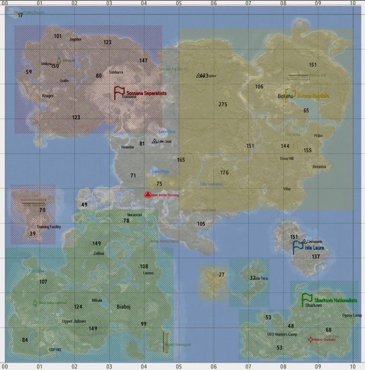 Hey all, this is a new campaign that I've been sitting on for a few months now and have been too busy to really start. This post will lay out the initial status of the campaign, and contain updates post each mission for those who missed them to catch up on the developments or failures of each. The campaign will aim to be a little more sandbox in nature, giving choices to leaders about which areas and resources they'd like to capture to help your side in the conflict. Said conflict will be a 4 way battle for the Islands of Fapovo. Story is as follows: "The Islands of Fapovo have splintered. The government has fallen, and many opportunistic and idealist groups have risen up to try and take hold in the power vacuum that followed. Many have already fallen as initial skirmishes have drawn territories and battle lines throughout the region. One such group is that of the Lauramarin, who are the smallest of the 4 remaining major groups. They have found themselves with little to no terrain to speak of, but a lot of wits and heart may just save them yet." The Map Starts as Follows: Each flag roughly indicates the capital of each faction, as well as their primary colour. The coloured areas indicate controlled territory, but are not exact. Unmarked areas are mostly no-mans land, and usually abandoned for a reason. The four sides at the start of the campaign are as follows: 1. The Lauramarin (Players) Idealistic and with a lot to prove, the Lauramarin are easily the underdog in this conflict. With only one unremarkable territory to speak of and very limited equipment with which to wage warfare, they will need to be smart and cautious. 2. The Botana Republic (Former gov forces) On the converse to the Lauramarin, are the Botana Republic. Mostly made up of former government forces, this gives the Botana the advantage of being the best equipped and trained of the forces. Still, corruption and greed still infect this force and may lead to their own eventual collapse. 3. The Sharkovo Nationalists (Numerous Conquerors) Hailing from the largest sub-island in the region, the Sharkovians have long wanted independence. This conflict has been their chance to take it and much more. They have already made significant territory gains, which include roughly a third of the mainland. They have achieved this through usage of their high numbers and clever use of their equipment. 4. The Sossana Separatists (Fierce Defenders) Originating in the more arid part of the main island, the Sossana Separatists are hardy, tough and merciless folk. They claim the North West, as well as the only island airfield, FOB Mermaid, which is a tactical boon they wish to keep. So far they have made few pushes for territory, instead opting to fiercely and brutally defend their territory at all costs. ------ I will likely run the first of these missions as a calendar event, due to the likelihood of wanting to severely restrict equipment due to your side's lack of it in-universe. I also apologise in advance for delays in starting and gaps between each missions, as I will probably be so busy it will be rare that I have energy to run them. But hopefully these posts will serve as a handy catch up before each mission.