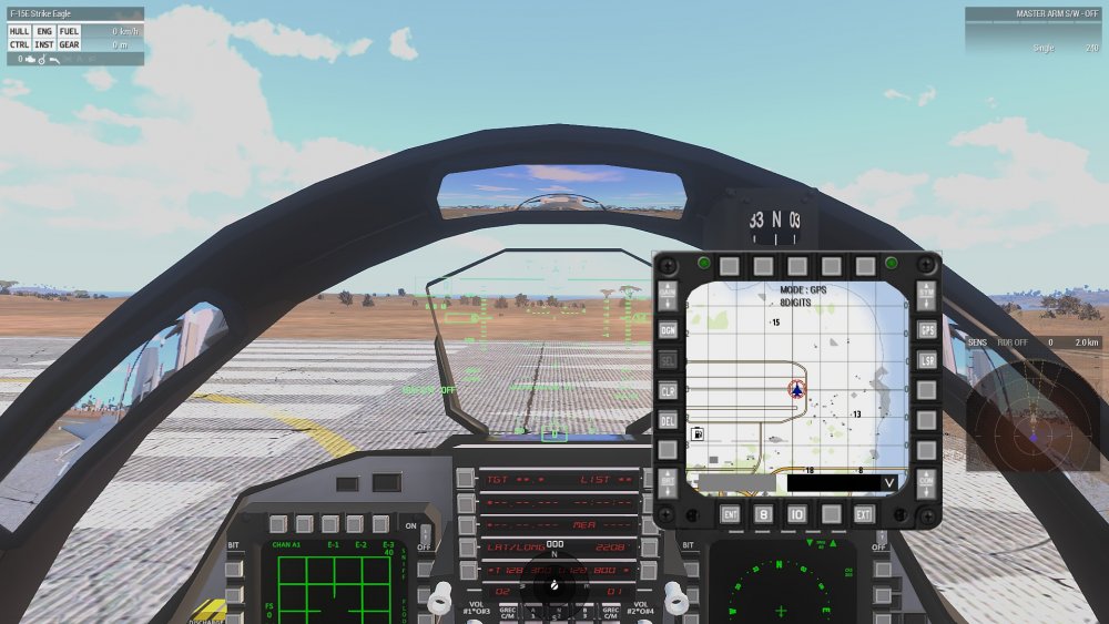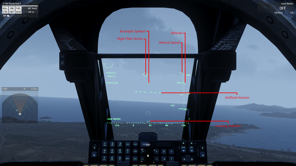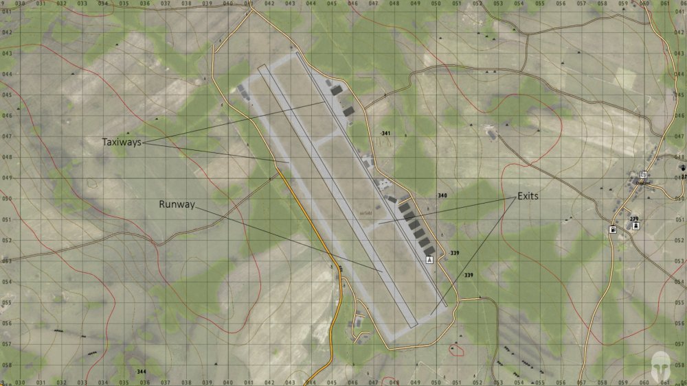 Table of contents: Introduction Terminology 1 FLIGHT BASICS 1.1 Taxi 1.2 Take-off 1.3 Flight 1.4 Landing 2 COMBAT BASICS 2.1 Weapons categorization 2.2 Combat HUD 2.3 Sensor display 2.4 Radar 2.5 Guidance systems usage 2.6 Commonly used munitions 2.7 Surface-to-air threats 3 COORDINATION 3.1 Terminology 3.2 Strike mission procedure 3.3 Airspace authority 3.4 Runway designation 3.5 NATO brevity codes 4 ADVANCED FLIGHT 4.1 Advanced landing 4.2 Emergency landing 4.3 Stalling 4.4 NoE flight 5 ADVANCED COMBAT 5.1 Air-to-ground combat 5.1.1 Loadout 5.1.2 Holding / Engaging 5.1.3 GPS/INS-guided strikes 5.1.4 Two-seater jets 5.2 Air-to-air combat 5.2.1 Loadout 5.2.2 Holding 5.2.3 Engaging 5.3 Missile evasion 5.4 Stealth Footnotes Introduction This guide is meant to teach interested players how to fly, and how to do it competently. I will be going over many things you'll likely find useful, from the basics to big booms to not becoming a big boom. This was designed for flight in Arma and on our servers, and may not apply to other servers. It definitely does not apply to other games, and much of what is mentioned would be ridiculous in real life or simulators. While you may find short lists here, this is not a catalogue of munitions or planes. There are other guides for that. This is not everything there is to know about flying and planes. I can't put every possible thing into the guide, no matter how basic, and there are many features I didn't bother including that you will learn from testing and experience. Before starting, make sure you have a large view distance. Around 8000 is usually the default for jet pilots. Let's begin. Terminology The guide will repeatedly make references to various factors, control surfaces, devices and indicators present on and affecting your plane. This section is a glossary for some of those terms. If you're completely new to this, I suggest having another tab open on this section so that you don't have to keep scrolling all the way up to find a term. Axes of rotation Attitude: the orientation of your plane relative to its velocity. Pitch: the vertical angle at which the nose of your plane is pointed. Roll: the angle at which your plane is rotated around the axis connecting its nose to its tail. Yaw: the angle in which your plane is pointed relative to its velocity along the horizontal plane. AoA: "Ange of Attack", your pitch relative to your velocity. Forces Thrust: the force of your engine pushing you forward. Lift: the force of the air under your wings, pushing your plane upwards. Drag: the force of air resistance on your plane, slowing it down. Control surfaces Elevators: the two panels on the sides of your tail. These move up and down, and control your pitch. Ailerons: panels near the ends of your wings. These move up and down in opposite directions to each other and control your roll. Rudder: the vertical panel on the back of your tail. This moves horizontally and controls your yaw. Flaps: panels usually on the rear edge of your wing. These extend back and downwards, controlling both lift and drag. Airbrake: large panels on the wings or hull of your plane. These extend vertically to increase drag and slow you down. Not to be confused with spoilers. Altitude ASL: altitude "Above Sea Level", i.e. your vertical displacement from the sea. MSL: "Mean Sea Level", basically the same thing for our purposes. ATL: altitude "Above Terrain Level", i.e. your vertical displacement from the ground directly beneath you. Also known as AGL: "Above Ground Level". Aircraft designation Fighter: an aircraft designed primarily to engage enemy aircraft. Attack: an aircraft designed primarily to engage surface targets. Bomber: an aircraft designed primarily for dropping bombs. (This differs from attack aircraft in that attack aircraft are supposed to be capable of using various types of ordnance such as missiles and cannons). Weapons Launch platform: the carrier of the device from which a rocket or missile is launched. E.g.: a plane, helicopter, infantry-portable rocket-launcher, etc. Hardpoint: a point on the wing or hull where a weapon can be attached. Fire-and-forget: descriptive of a weapon that will continue tracking its target autonomously regardless of whether the launch platform is doing so. Lock: a state in which a weapon has recognized and is tracking a target. FCS: "Fire Control System", a computer-controlled system of components working to guide a weapon accurately onto its target. Countermeasure: anything used to misdirect or disrupt a guided weapon. PIP: "Predicted Impact Point", the expected location of impact of a released ordnance. CCIP: "Constantly Computed Impact Point", a PIP calculation updated at a high frequency taking into account various factors such as weapon type, pitch, range, velocity, etc. Airfields Runway: a strip of land designated for taking off and landing. Taxiway: a strip of land designated for taxiing. Exit: a short taxiway used to enter or exit a runway, usually connecting in from the side. Miscellaneous Landing gear: whatever you use to land. In most planes, these would be the wheels. Wheel-brakes: the brakes on you wheels. HUD: "Heads-Up Display", the green holographic display in front of the pilot; present in most jets. HMD: "Head-Mounted Display", a HUD built into the pilot's helmet. Stall: a state in which an aircraft falls out of the air, with little to no control, as a result of extremely low velocity. FLIGHT BASICS TAXI Taxiing is when you "drive" the plane along the ground. Keep the speed low (below 50 as a general rule of thumb). You can use Q and E (by default) to turn. Make sure you take it even slower at the turns: some planes have very wide turning circles, and some simply flip over if you make a tight turn over at 30km/h. Keep it smooth. Most paved airfields have continuous yellow lines marked on the taxiways for guidance. Your GPS screen and/or map will help if you aren't familiar with the layout of the airfield. Keep in mind that s